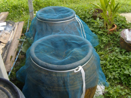 เห็นแบบนี้อย่านึกว่าหมักน้ำปลานะครับ ปิดตุ่มใว้กรองน้ำไม่ให้ใบไม้ลงไปในตุ่ม