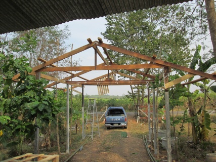 สัปดาห์นี้ไปสวนบ่อยหน่อยเพราะหยุดตรุษจีนเปิดงานมาก็เว้นได้3 วันก็ไปสวนอีกแล้วเหนื่อยหน่อยแต่ก็ไม่เป็นไร ชอบสนุกดีครับ มาดูการทำหลังคาโรงจอดรถต่อครับ