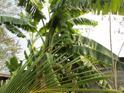 กล้วยเครือนี้หลังบ้านใหญ่มาก ต้นเอนแล้ว