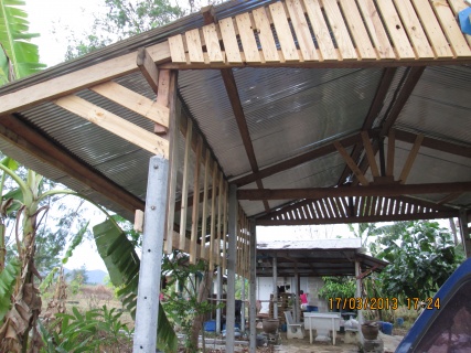 สัปดาห์นี้ได้ไปทำหลังคาอีกซีกจนเสร็จเรียบร้อย พอทำเสร็จปุ๊บ ฝนเทลงมาเลยได้ทดลองหลังคาใหม่ทันทีมาดูหลังคาเสร็จเรียบร้อยกัน