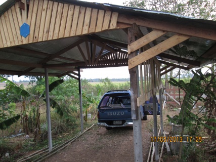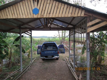 มองจากด้านในออกไปครับ พอทำเสร็จแล้วร่มรื่นดีมากน่านั่งเล่นมากกว่าจะเป็นโรงจอดรถ 555