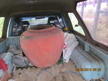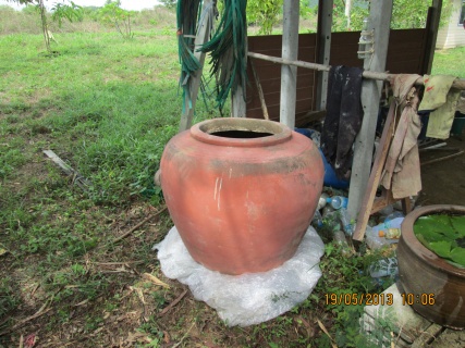 พี่ที่ทำงานรู้ว่าผมชอบโอ่งเลยบอกว่าที่บ้านมีไม่ใช้เเล้วให้เข้าไปขน ผมเลยเอาไปไว้ที่สวนใบนี้ดีครับไม่รั่วไม่รานใส่น้ำได้