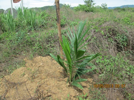 ปาล์มน้ำมันชุดนี้ได้มาจากโรงแรมทางจันทบุรี ก็มันงอกโคนต้นครับไม่รู้ว่ามันจะออกมาเป็นตัวผู้หรือเปล่าก็ใหญ่มากแล้วลองเอาไปลงดินดูโชคดีอาจจะมีปาล์มขาย