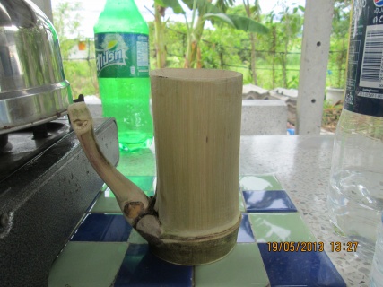 แก้วน้ำสไตล์บ้านสวน ไอเดียร์ พี่แว่น แก่แหละครับเลี้ยงวัวไปติดอารมณ์ศิลปะตามผม ตัดกระบอกไม้ไผ่มาทำแก้วสวยงามไปอีกแบบนะ