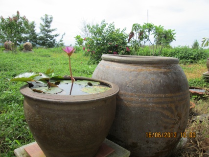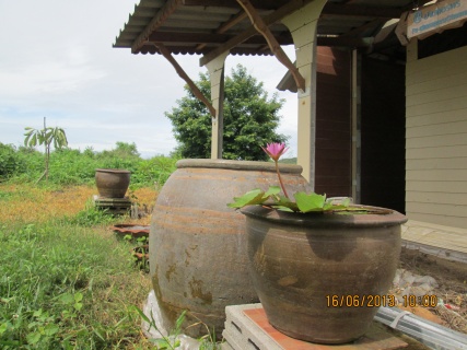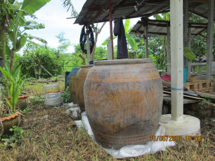 จัดวางตรงที่มีหลังคาหน้าฝนนี้ก็ได้น้ำเยอะเหมือนกันครับ น้ำฝนที่สวนใส่ในโอ่งเย็นมากเวลาล้างหน้า
