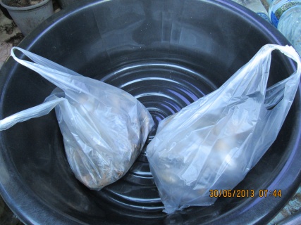 ซื้อมาจากตลาดพ่อค้าก็เอาให้เยอะเลยเพราะบอกว่าจะไปปล่อยใส่ถุงแน่นมากผมก็กลัวมันจะตายเลยต้องซื้อกาละมังมาใส่