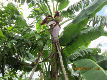 กล้วยข้างห้องเก็บของออกปลีแล้วใหญ่มากต้นสูงต้องค้ำไว้ก่อนเดี๋ยวอดกิน555