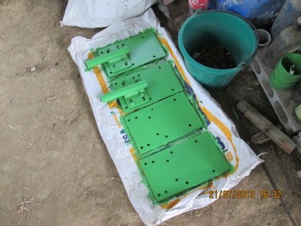 เขียนแบบส่งไปให้เพื่อนทำแผ่นเพลท ยึดชิงช้ากว่าจะได้ไปเอามาก็เย็นนำไปทาสี ที่สวนมีสีเขียวก็ทาสีเขียวไปละกัน กันสนิมไว้