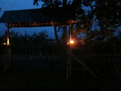 บรรยากาศยามค่ำคืน กับตะเกียงที่ริมรั้ว สวยดีครับ เดือนมืดแบบนี้ตะเกียงเพียงดวงเดียวก็สว่างมาก