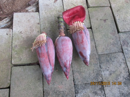 ไปตัดแต่งสวนกล้วยหลังบ้าน เลยตัดหัวปลีกลับมาด้วย พอดีน้องสาวมาจาก อังกฤษ จะได้ทำไรทาน