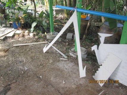 ต้องเล่นกายกรรม นำพาเลสที่ยังไม่ได้เลาะไม้ออกมารองเป็นฐานแล้วได้บันได้บ้านพี่อ้วนต่อขึ้นไปอีก สูงน่าดู ตกมาสงสัยจะเดี้ยง