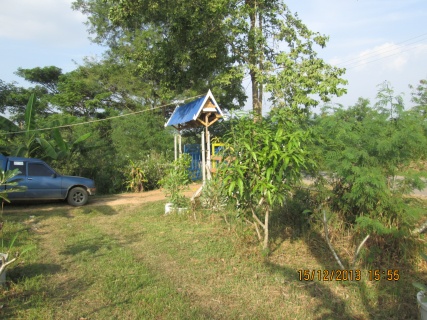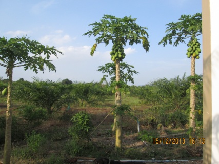 ภาพนี้ด้านข้างครับ ขวามือคือ ต้นเพกา มองไปไกลหน่อยเป็นมะพร้าวรอดอยู่ต้นเดียว
