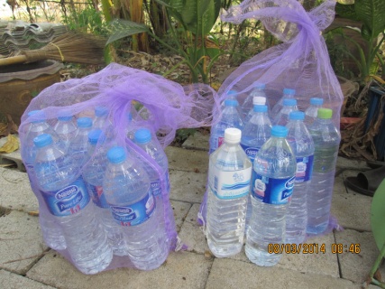 ไปคราวนีค้างคืนต้อง เก็บนำ้ไว้ให้มากเพื่อคราวต่อไปจะได้ไม่ต้องขนมาเยอะ ขวดเหลือจากที่บ้านแม่เนื่องจากน้ำกร่อย พี่สาวเลยซื้อน้ำมาดื่ม เก็บขวดไว้ให้