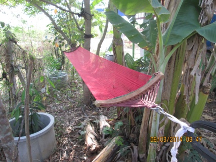 จากต้นขี้เหล็กต้นนิดเดียวตอนนี้ใหญ่พอที่จะผูกเปลได้แล้ว เยี่ยมมากเลยขี้เหล็กเป็นไม้มีประโยชน์มากให้ร่มเงาใบดอกกินได้ ทำฟืนได้ สารพัดประโยชน์
