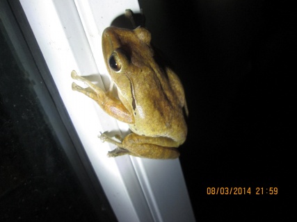 แขกประจำพอช่วงค่ำเริ่มมาแล้วก่อนนอได้ถ่ายไว้เกาะที่ขอบกระจกเราคงเป็นสิ่งแปลกปลอมของเขา เพราะเขาคงมาประจำ