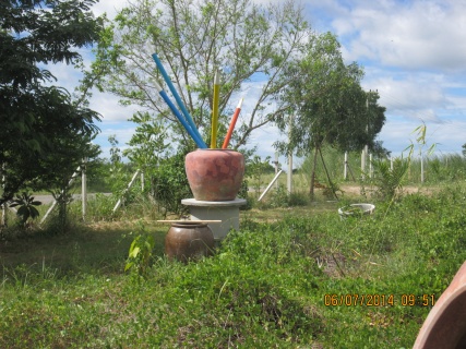 ส่วนประกอบงานศิลปะทำมาจากที่บ้านใช้ปูนหล่อ เพื่อทำปลายดินสอที่เสียบในโอ่ง