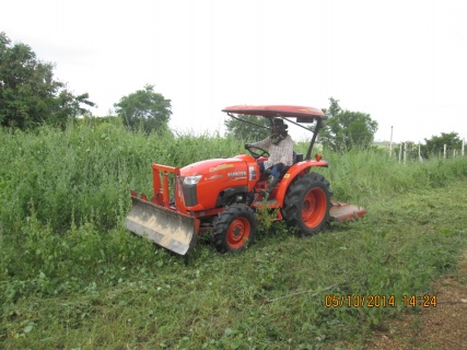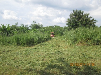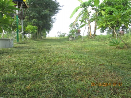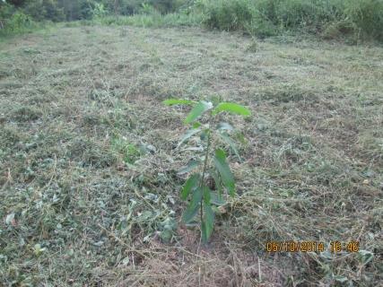 ลงมะม่วงแรดเพาะเมล็ดไป 2 ต้นแนวขนานถนนทางไปสระน้ำโชคดีพี่อ้วนตัดหญ้าให้พอดี