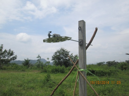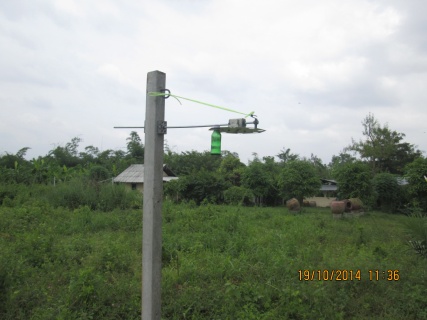 ตั้งเสาหล่อตีนเสาไว้ตั้งแต่สัปดาห์ที่แล้วคราวนี้ไปก็ได้จัดการเอาขึ้นเสาสักที เอาเชือกผูกเป็นสเตย์ไว้ก่อนอาทิตย์หน้าค่อยทำให้ดี