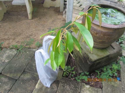 เห็นบ้านพี่อ้วนซื้อมาปลูกผมก็อยากลองปลูกบ้าง จัดไป 1 ต้นทุเรียนหมอนทอง เรางบน้อยราคาต้นละ 60 บาท