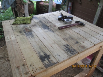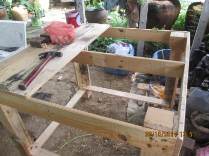สัปดาห์นี้ไปสวนใครบอกว่าหมดฝนแล้ว ที่ไหนได้ไปแต่เช้าตกแต่เลยทำงานกลางแจ้งอะไรไม่ได้สักอย่างดีนะที่มาถึงก็ลงมะม่วงไปก่อนเลย กลายเป็นว่าปลูกแล้วเทวดารดน้ำให้อีกแล้ว มาดูกันว่าได้ทำอะไรไปบ้างเริ่มจากงานทำเฟอร์นิเจอร์(พูดซะหรูหรา)มาชมกันเลยดีกว่า