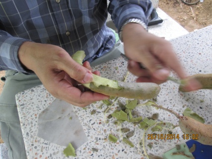 ไอ้เราก็สอดรู้สอดเห็น เฮ้ย ไม่ใช่ อยากรู้อยากเห็นต่างหากว่าเขาแกะเปลือกกันยังไงพี่ไหวเลยจัดการสาธิตการแกะสัก 1 ฝัก มันก็ไม่ง่ายแต่ก็ไม่ยากนะ แต่ต้องใจเย็นๆ ใช้มีดบางๆค่อยแซะเปลือออก แต่ขอยืนยันนะว่าที่แช่อิ่มแล้ว อร่อยสัปดาห์นี้แค่นี้ก่อนสัปดาห์หน้าติดตามกันใหม่ครับ
