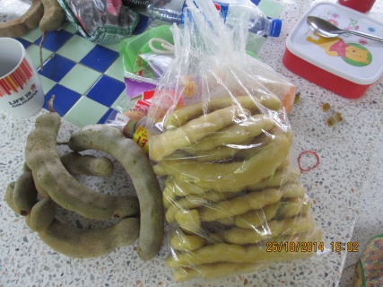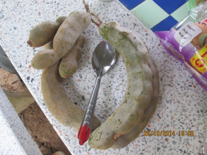 ให้ดูขนาดมะขามเปรี้ยวยักษ์ของสวนพี่ไหวใหญ่มากเทียบกับช้อนยาว ช้อนยังสั้นอะ