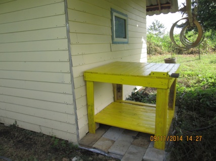 สัปดาห์ที่แล้วทำโต๊ะปากกาแสนสวยคราวนี้ไม่มีที่วางครับต้องเอาพลาสติกมาปูเอาอิฐบล็อกมาวางไม่ทำอย่างนี้ก็ไม่ได้รับรองไม่พ้นปลวกแน่