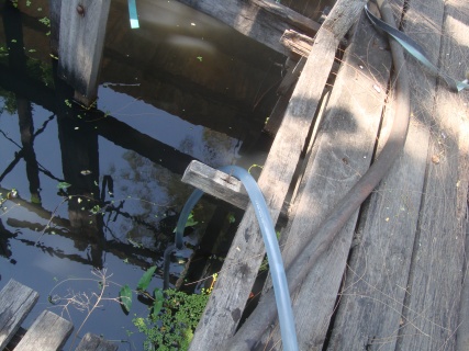 ทดลองใช้ปั้มมือหมุนที่ใช้ปั้มน้ำมันตามต่างจังหวัด ทดลองสูบน้ำโดยต่อสายยางยาวลงไปในบ่อ แล้วสว่นปลายสายยางที่อยู่ในแหล่งน้ำใส่ ฟุตวาล์ว 1 ตัว ก่อนที่จะสูบให้กรอกน้ำให้เต็มในท่อก่อน เพื่อให้เกิดหลักการเดียวกันกับระบบ ไฮดรอลิกส์ (Hydraulic) จากนั้นก็หมุนปั้มโดยให้ปั้มอยู่ใกล้แหล่งที่เราจะนำน้ำไปใช้