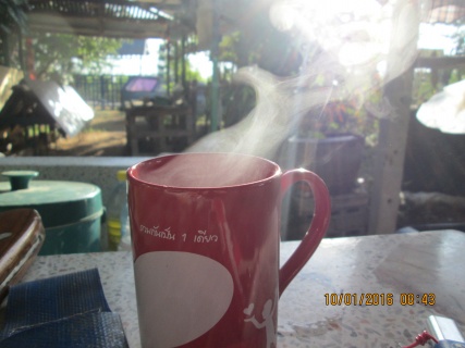 ต้มน้ำเดือดเหมือนกันควันฉุย หอมฉุย กาแฟต้มจากถ่านไม้กระถินและไม้เนื้ออ่อนทั่วไป ตัดแต่กิ่งมาทำถ่านต้นไว้เหมือนเดิมเป็นแนวทางการสมดุลย์พลังงานและสมดุลย์มวล
