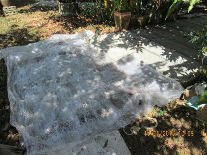งานหนักอีกอย่างคือเอาแผ่นปูนสำเร็จรูปปูเป็นที่จะวางโต๊ะม้าหินในอนาคต