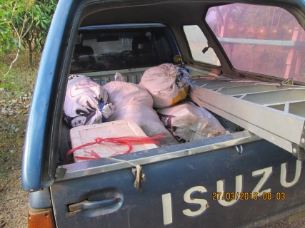 คราวนี้ขนกะลามะพร้าวไปที่สวน 5 กระสอบว่าจะเอาไปทำงานศิลปะ หรือเผาถ่านกะลาดีนะ