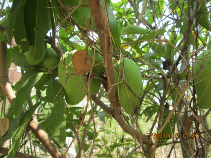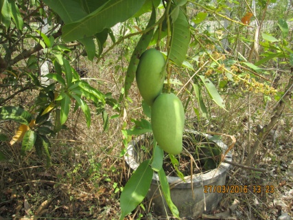 มะม่วงออกตามเวลาที่ควรออกได้ มีหลายลูกเหมือนกันต้นนี้ได้ทานทุกปีนะ