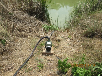 สูบน้ำกันหน่อย ระยะทางก็ไกลจากสระถึงบริเวณที่ทำการเรา สูบทั้งวันน้ำในสระยังไม่ยุบลงไปนะเเสดงว่ามีตาน้ำ 555